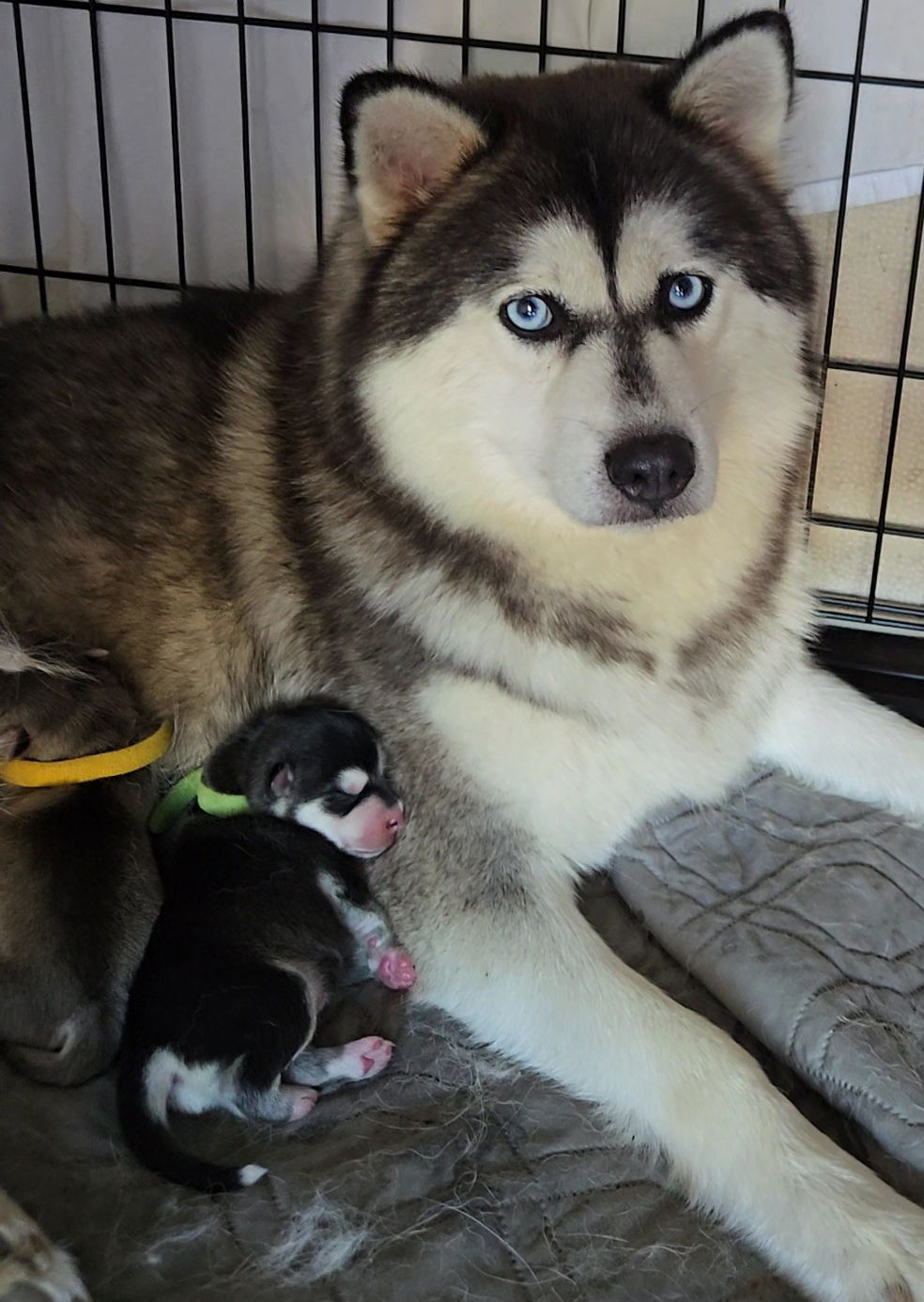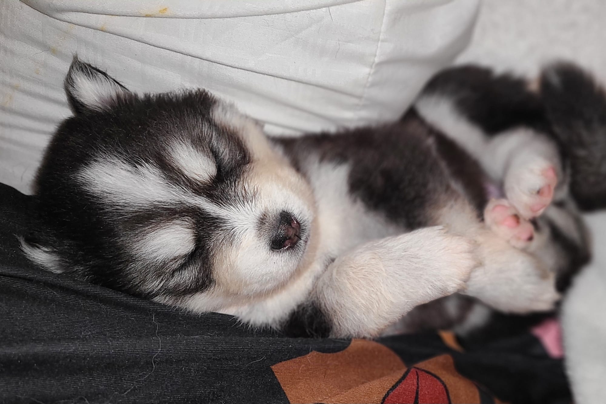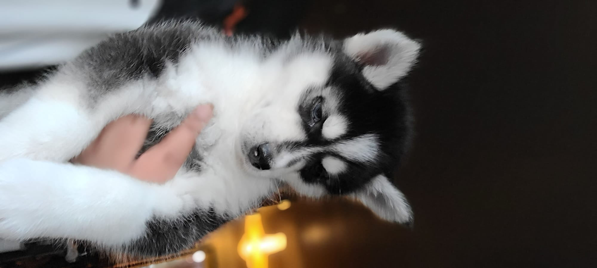Due to the nature of the pairing, first generation, (F1) Pomskies tend to have a wide variety of size and coat color expression in their litters. As geniously described by Forrest Gump "like a box of chocolates", You never truly know what your gonna get.